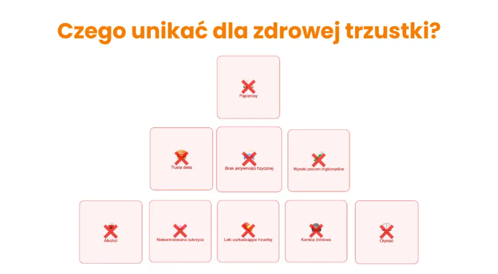 - spożywania alkoholu w nadmiarze – regularne nadużywanie może prowadzić do uszkodzeń gruczołu trzustkowego,