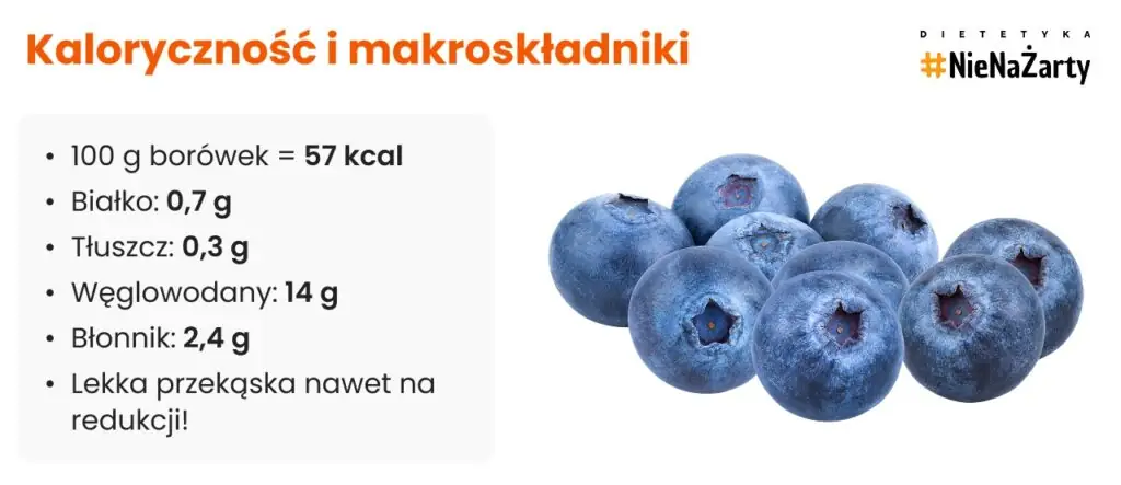 Makroskładniki w 100 g borówek: