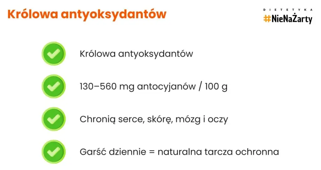 • Dzika borówka: ~558 mg antocyjanów/100 g.