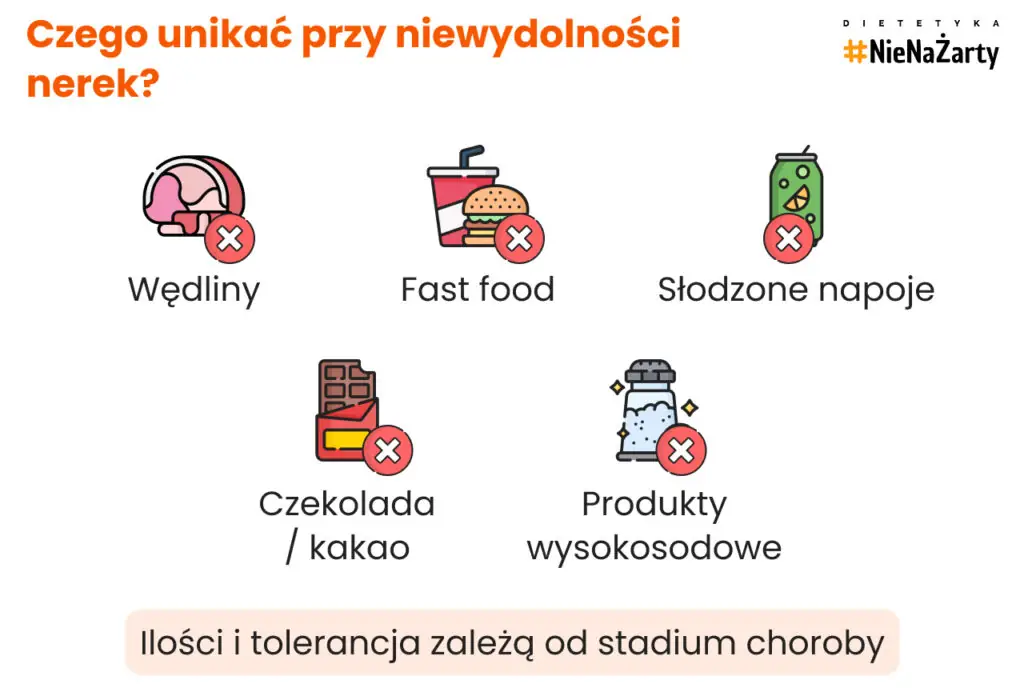 Na funkcjonowanie nerek duży wpływ ma codzienny styl życia. Wysokie spożycie sodu, częste sięganie po przetworzone wędliny, słodzone napoje, czekoladę czy kakao zwiększają obciążenie nerek i sprzyjają zatrzymywaniu wody w organizmie. Z kolei zbyt niskie spożycie płynów podnosi ryzyko kamicy nerkowej, a nadmierne spożycie białka może przyspieszać pogorszenie funkcji nerek, szczególnie u osób w zaawansowanych stadiach niewydolności.