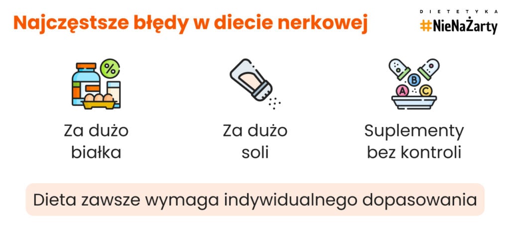 - Nadmiar białka i sodu zwiększa obciążenie nerek, nasila zaburzenia metaboliczne i może przyspieszać progresję niewydolności nerek.