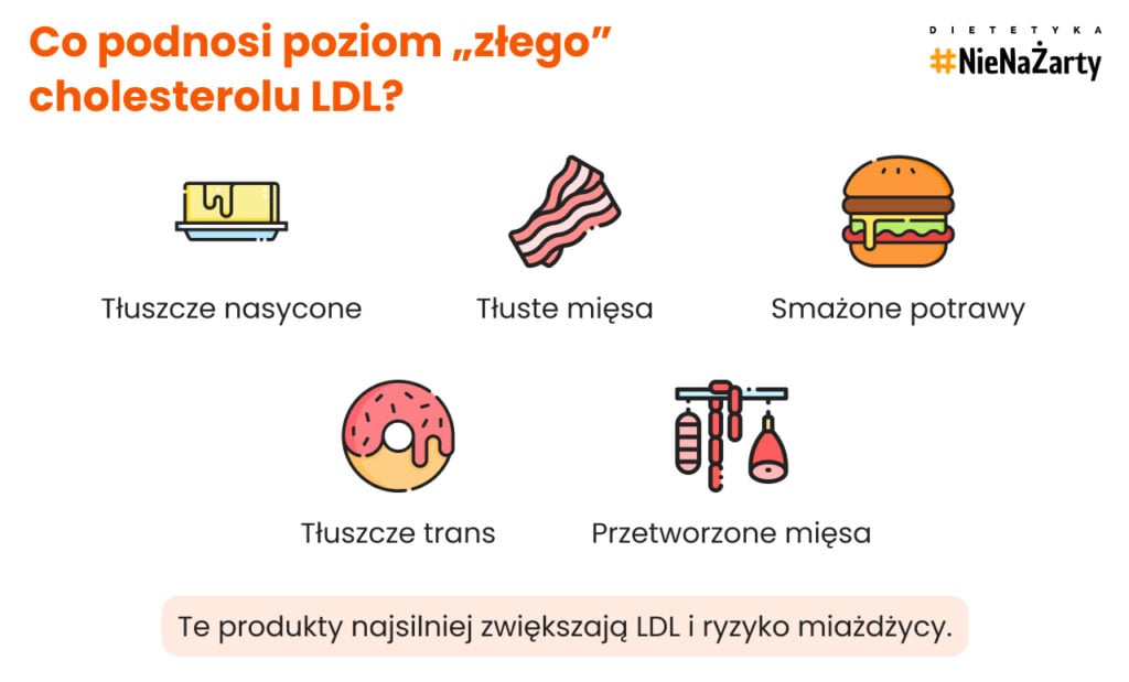 Przy podwyższonym poziomie cholesterolu LDL kluczowe jest nie tylko włączanie zdrowych produktów, ale również ograniczenie tych, które najbardziej podnoszą stężenie „złego cholesterolu” we krwi. To właśnie te składniki diety najczęściej odpowiadają za pogorszenie profilu lipidowego, zwiększone ryzyko miażdżycy i chorób sercowo-naczyniowych.