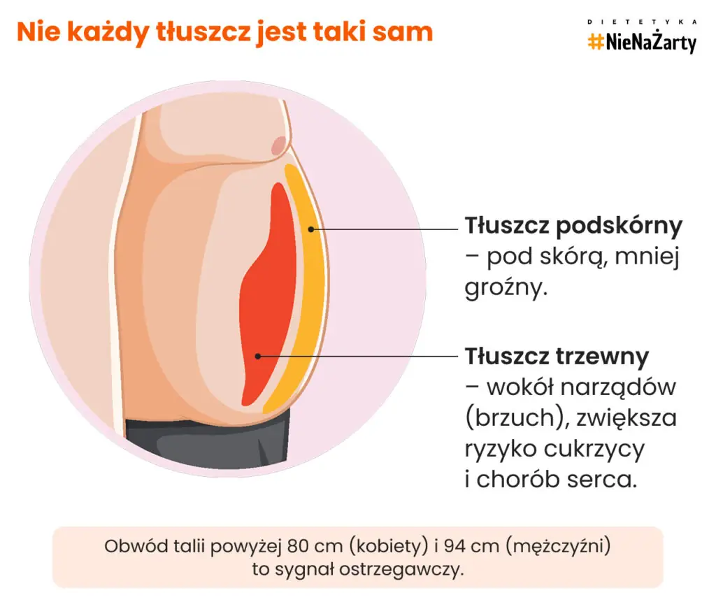 Tkanka tłuszczowa brzuszna (trzewna) jest dużo bardziej niebezpieczna niż ta podskórna.