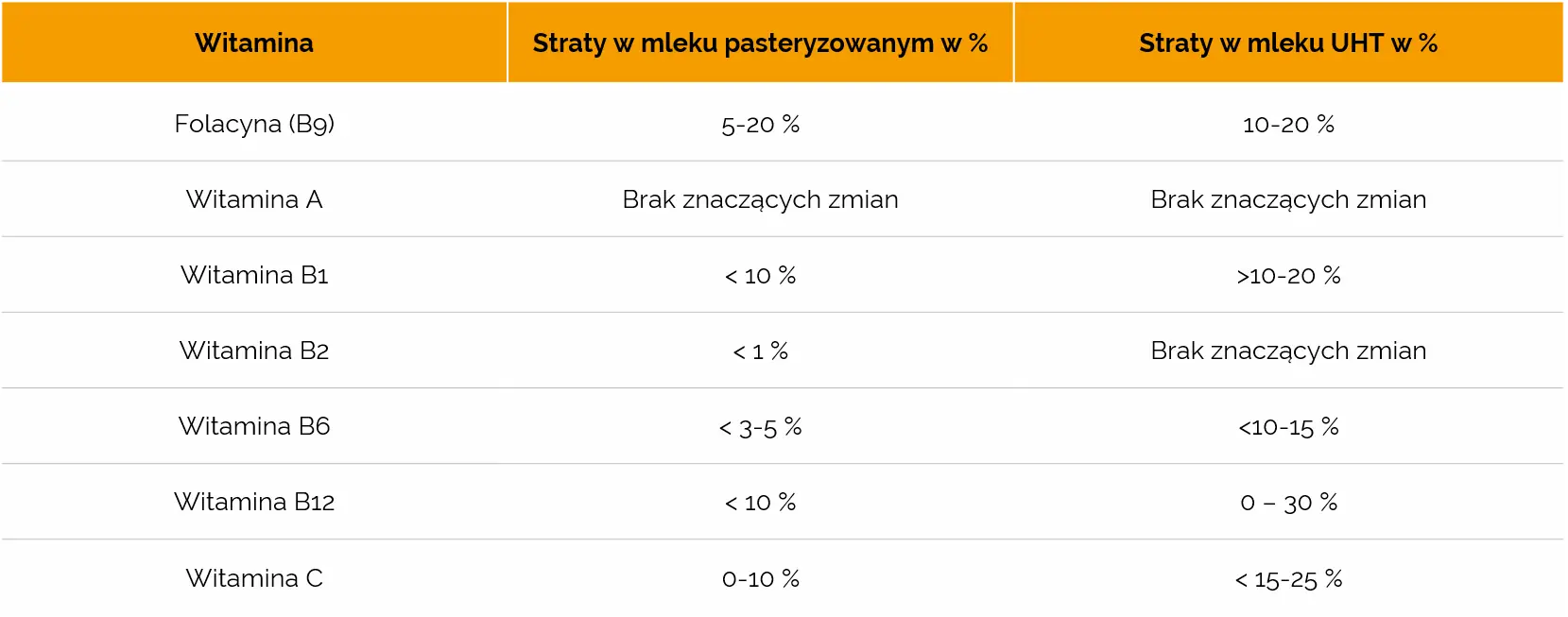 Minusem obróbki cieplnej mleka jest potencjalnie negatywny wpływ wysokiej temperatury na witaminy, które tak samo jak mikroorganizmy nie przepadają za nadmiernym ciepłem. Nie musisz jednak się obawiać, straty witamin nie są specjalnie wysokie [4]. Na pewno nie na tyle duże, żeby ryzykować picie surowego mleka.