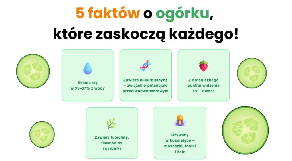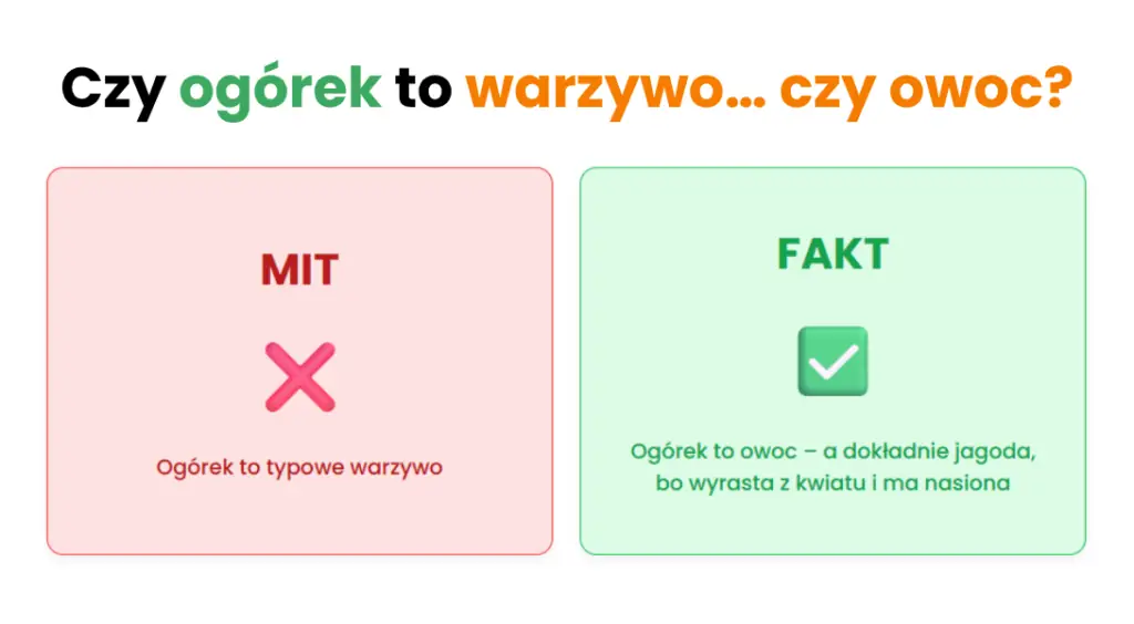 Co ciekawe, choć ogórek w potocznym i kulinarnym znaczeniu traktowany jest jako warzywo, z botanicznego punktu widzenia jest owocem – a dokładniej jagodą, ponieważ wyrasta z kwiatów i zawiera nasiona.