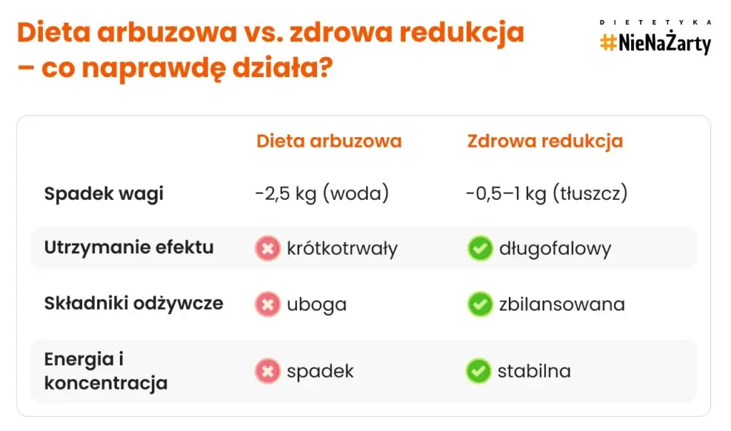Dieta arbuzowa nie jest sposobem na zdrowe odchudzanie. Jest uboga, monotonna i może być niebezpieczna, jeśli traktowana poważnie.