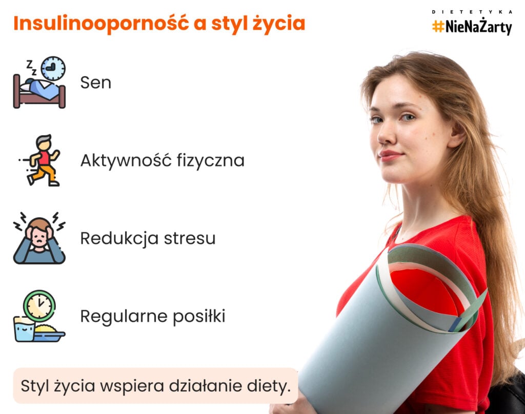 - odpowiednia ilość snu, którego niedobór sprzyja insulinooporności i zaburzeniom apetytu,