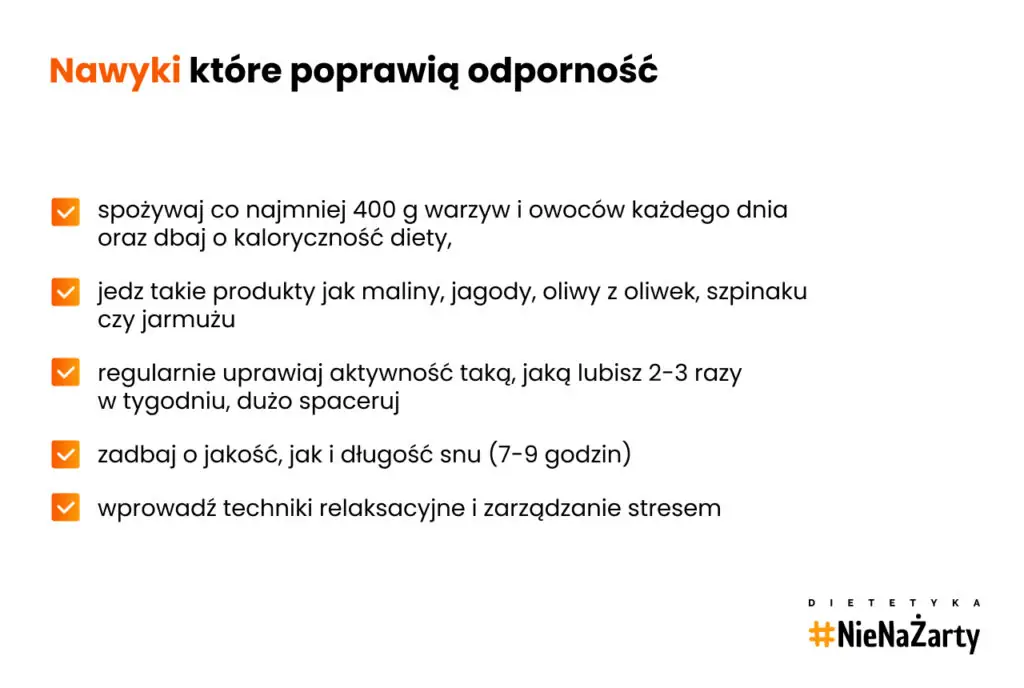 - Styl życia wspierający odporność – dieta to tylko jeden element, pamiętaj o aktywności fizycznej
