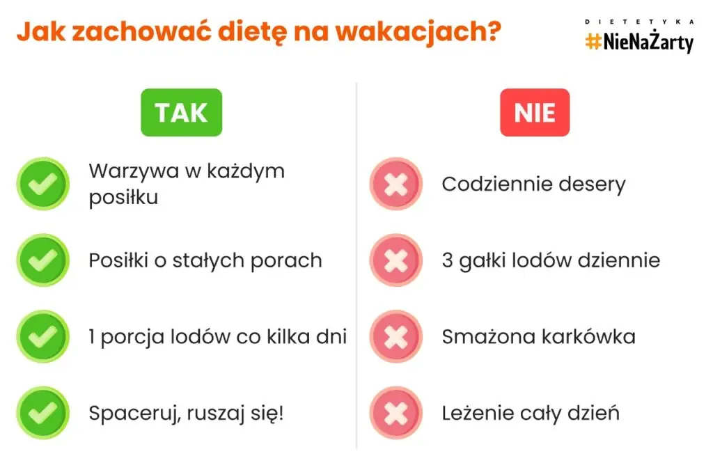 • Nie rezygnuj z przyjemności – lody czy lokalny deser to część urlopowego doświadczenia. Kluczem jest umiar: 1 gałka co kilka dni, a nie codzienna uczta.