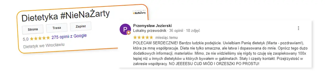 Potrzebujesz konsultacji z dietetykiem? Przestań się dręczyć i oddaj się w ręce specjalisty. Pomogliśmy ponad 20 000 osób osiągnąć cel, a nasza opinia w Google to 5/5 na podstawie ponad 390 opinii. Szybkie, smaczne i indywidualne diety online to nasza specjalność.