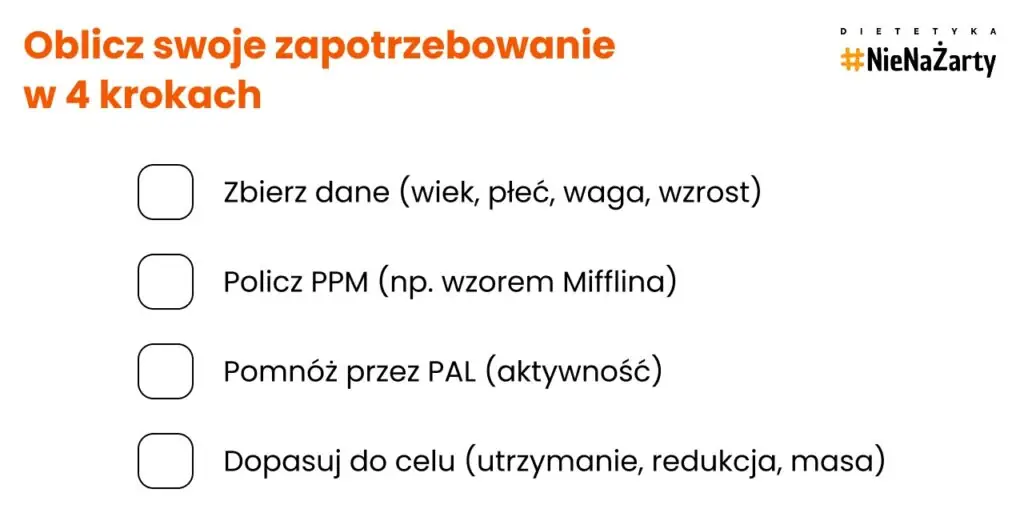 Dlatego kluczowe jest obliczenie swojego indywidualnego zapotrzebowania energetycznego. Możesz zrobić to: