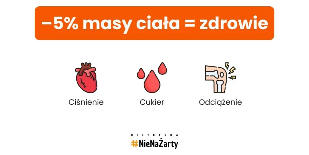 - Cele etapami – redukcja 5–10% masy ciała poprawia zdrowie i motywuje do dalszej pracy.
