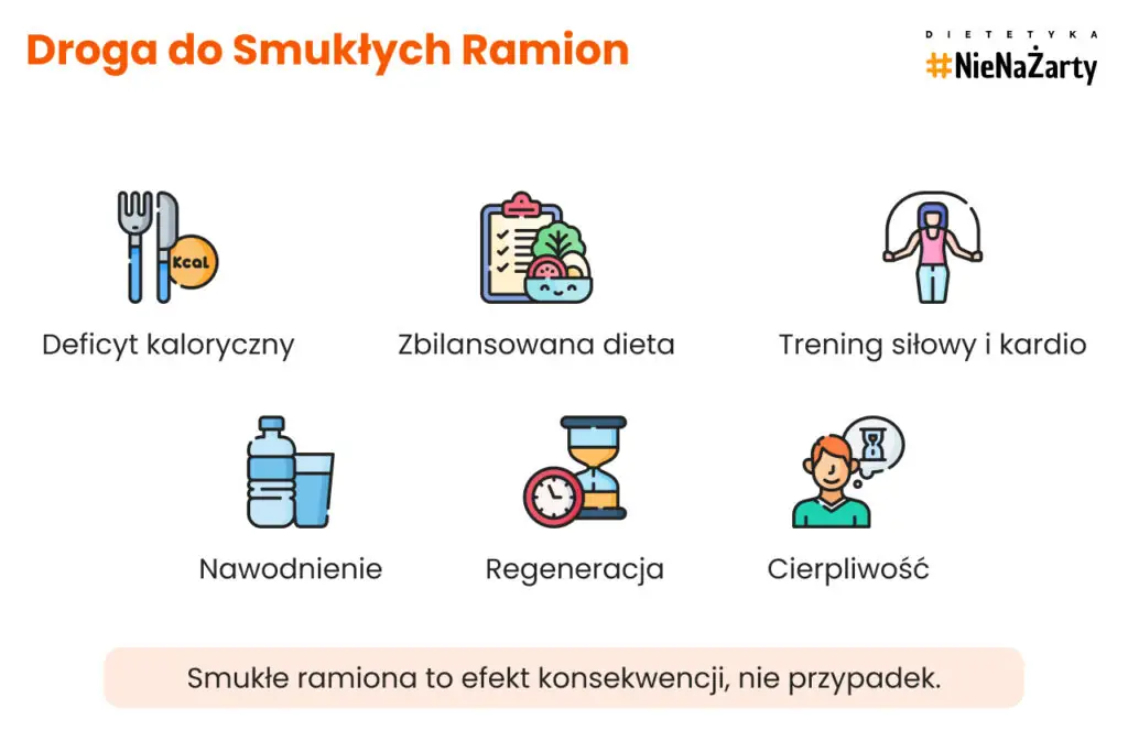 Smukłe ramiona nie są efektem jednej serii ćwiczeń, lecz konsekwentnego działania na wielu frontach.