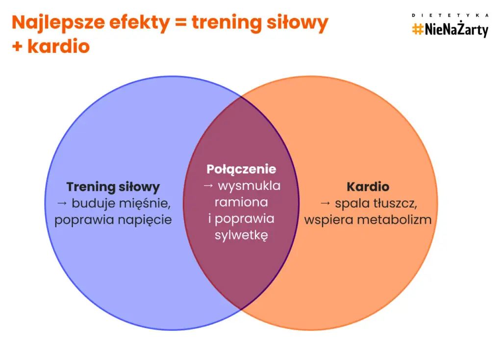 Badania pokazują, że połączenie kardio, treningu siłowego i zbilansowanej diety daje najlepsze efekty — taka kombinacja skuteczniej obniża poziom tkanki tłuszczowej niż sam trening czy dieta [5].