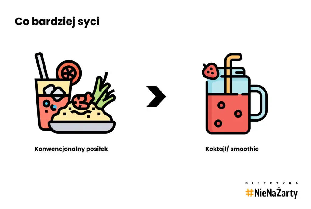 Smoothie jest gęstsze i bardziej sycące, ponieważ często zawiera składniki takie jak awokado, banany, płatki owsiane czy masła orzechowe. Może pełnić funkcję samodzielnego posiłku, zapewniając większą dawkę energii i uczucie sytości.
