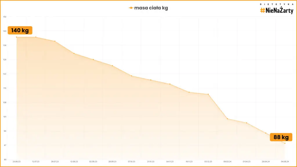 Bogumił schudł 47% masy ciała, tracąc 66,2 kg, 51 cm w pasie i 36 cm w biodrach. Dzięki planowi dietetyczki Katarzyny diametralnie poprawił swoje zdrowie.