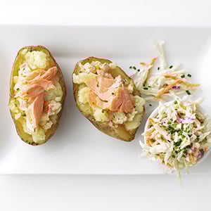 Ziemniaki pieczone z łososiem i surówką Coleslaw