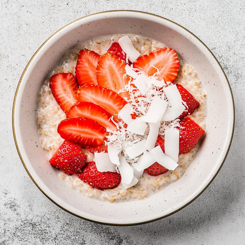 Białkowa owsianka z truskawkami i wiórkami kokosowymi