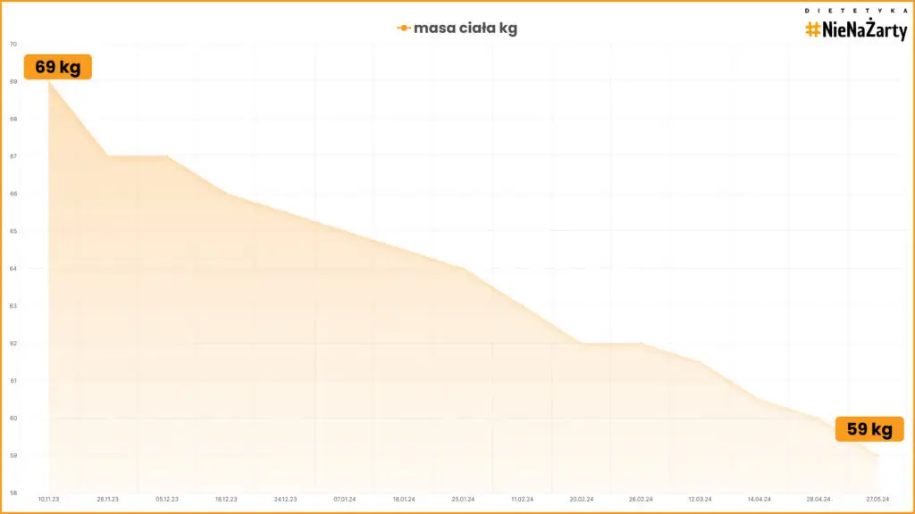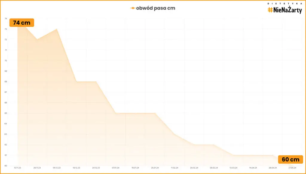 Maria poprawiła swoją relację z jedzeniem oraz ustabilizowała problemy trawienne. Efektem ubocznym było również wypracowanie wymarzonej sylwetki. Maria schudła aż 10,1 kg, a w obwodzie pasa straciła 14 centymetrów. Tak zmieniała się sylwetka Marii na przestrzeni współpracy.