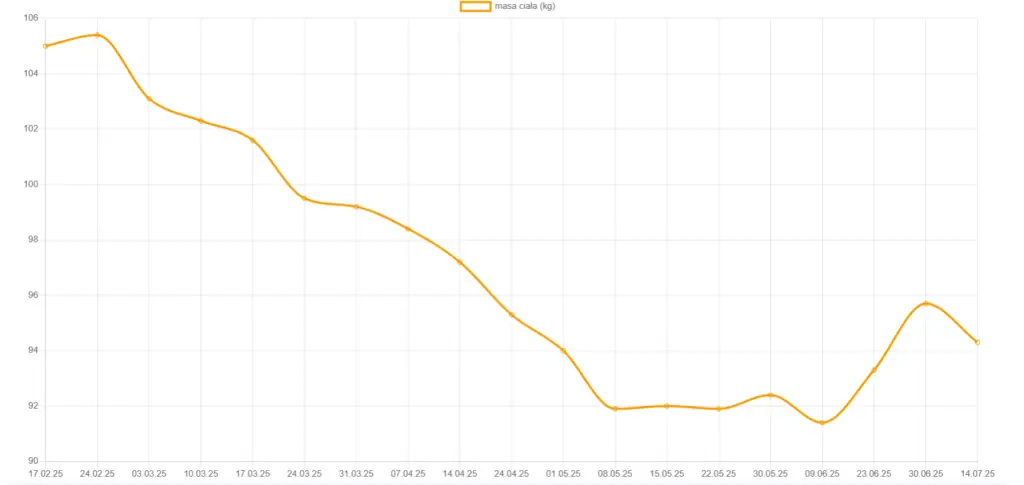 Michał zgłosił się do nas z celem redukcji tkanki tłuszczowej oraz wyrobienia zdrowych, trwałych nawyków żywieniowych. Był osobą zdrową, bez aktualnych badań, ale zależało mu na poprawie sylwetki i wprowadzeniu bardziej świadomego podejścia do diety.
